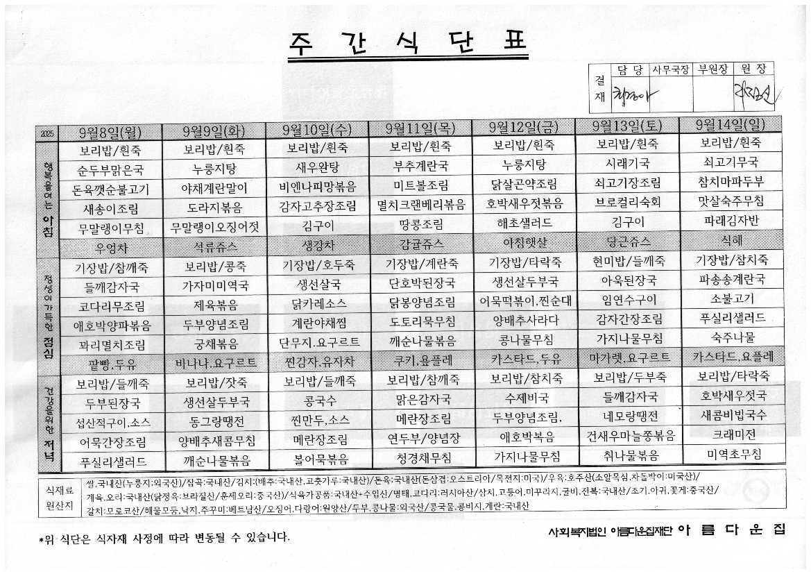ÁÖ°£½Ä´ÜÇ¥(9/8~9/14)