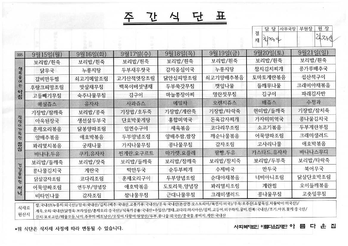 ÁÖ°£½Ä´ÜÇ¥(9/15~9/21)